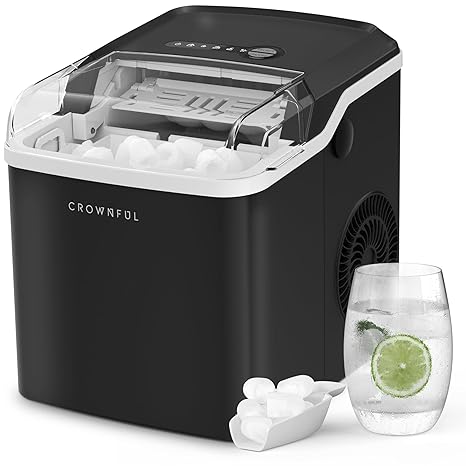 Portable Small Ice Machine with Self-Cleaning, 9 Cubes Ready in 7 Mins, 26lbs/24H, 2 Sizes Bullet Ice, with Scoop and Basket for Home Kitchen Office Bar Party .. My favorite camping companion.